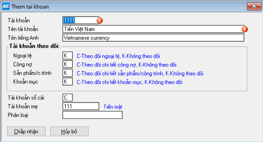 -Tài khoản mẹ: Dùng cho các tài khoản cấp 2. Ví dụ TK1111 sẽ có tài khoản mẹ là 111.