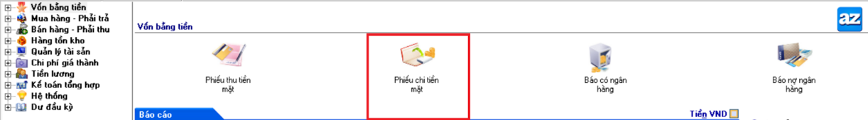 Bước 1: Vào phân hệ Vốn bằng tiền, chọn Phiếu chi tiền mặt ( hoặc vào Du lieu \Phiếu chi tiền mặt).
