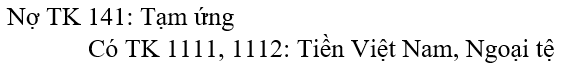 + Tại mục Loại giao dịch: chọn C1104 – Chi tiền tạm ứng