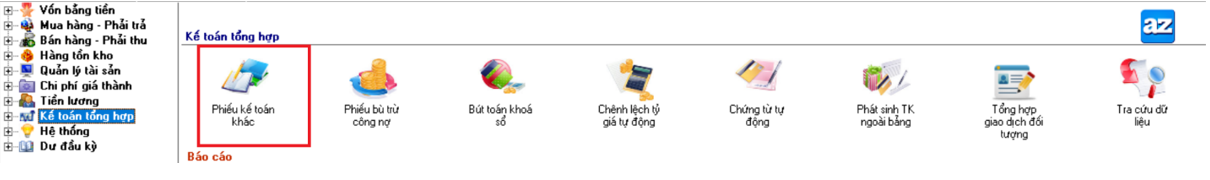 Bước 1: Vào phân hệ Kế toán tổng hợp chọn Phiếu kế toán khác hoặc chọn (Du lieu\e. Phiếu kế toán khác)