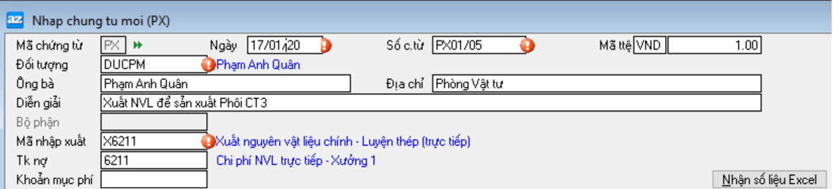 - Trường hợp nhập không qua kho, đưa thẳng đi sản xuất hãy để trắng thông tin “Mã kho”.