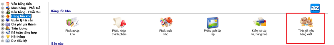 Vào phân hệ Hàng tồn kho\Tính giá vốn hàng xuất