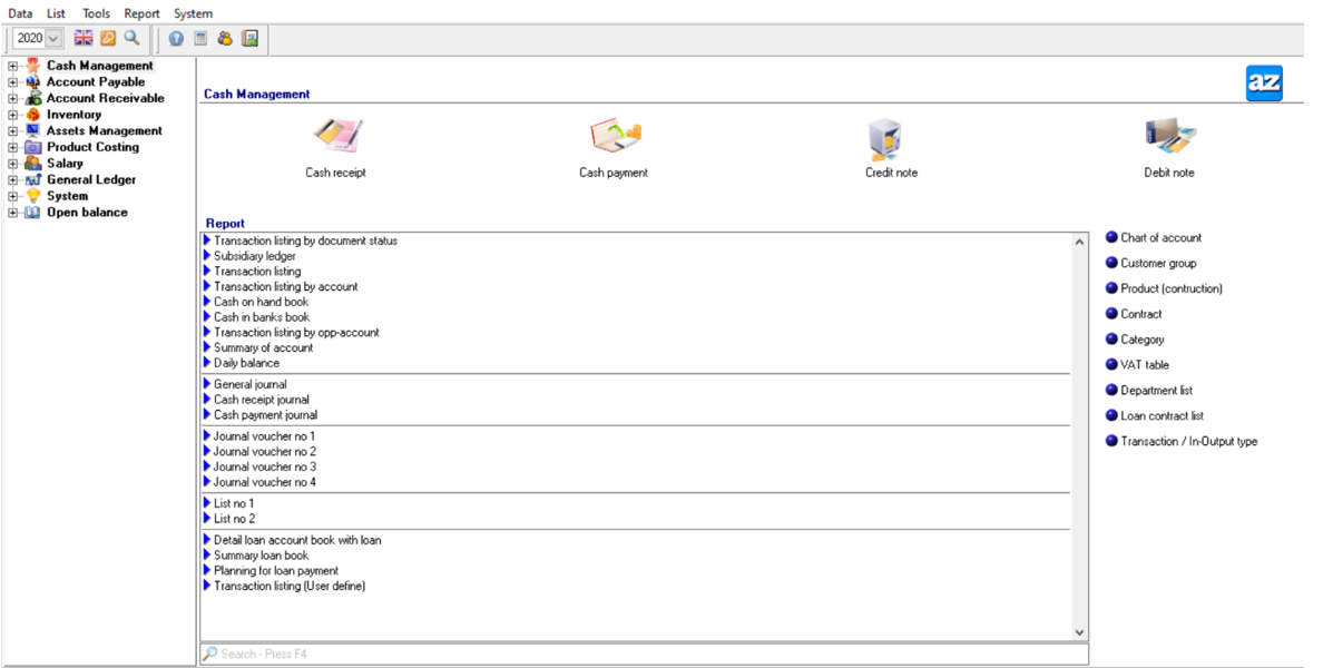 Chọn năm làm việc hiện thời cho chương trình. Khi cần thao tác hãy nhấp chuột vào biểu tượng hình tam giác, sau dó chọn năm cần làm việc trong hộp chọn đổ xuống.