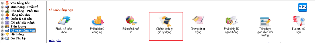 Bước 1: Từ menu hệ thống chọn “Tong hop\Chênh lệch tỷ giá tự động”