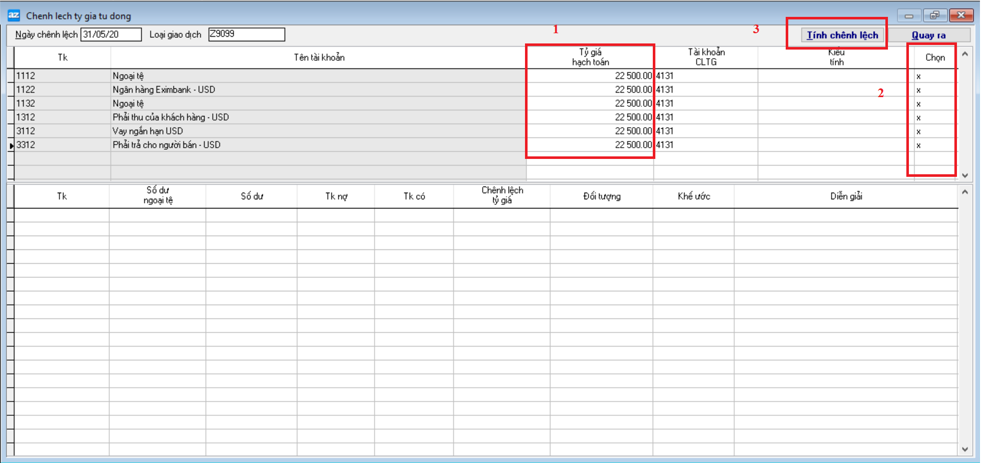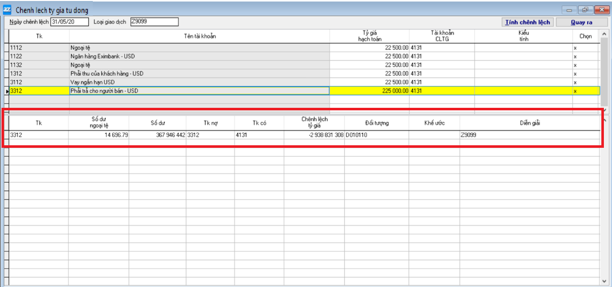 Nhấn Ok và chương trình sẽ được tự động tính chênh lệch tỷ giá