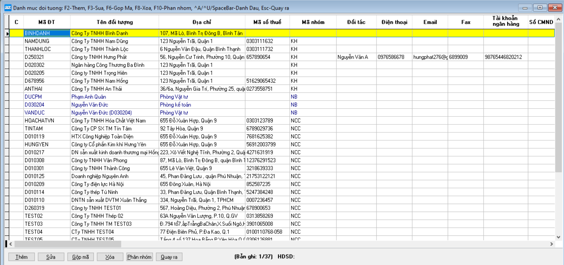 Danh mục đối tượng dùng để khai báo các đối tượng công nợ như là người mua, người bán, tạm ứng, đơn vị thành viên,...