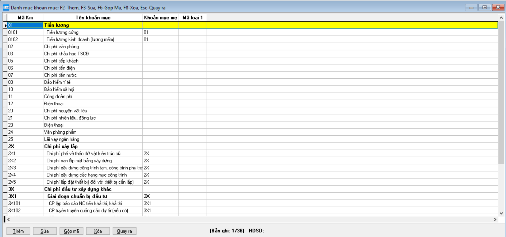 1. Vào menu Danh mục\Danh mục Khoản mục phí.