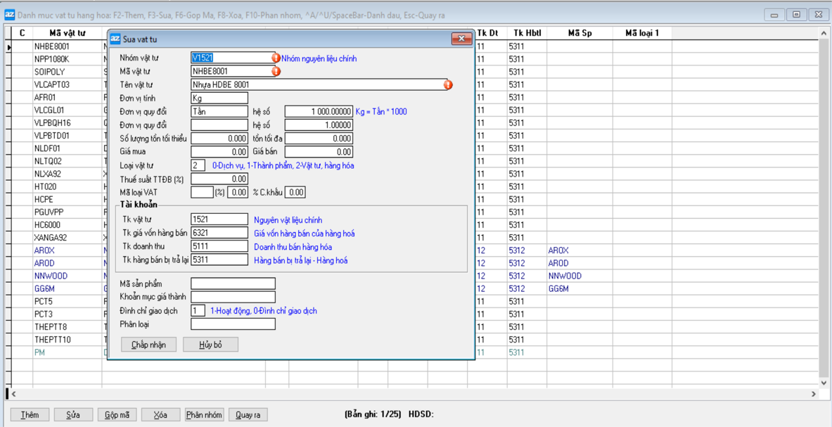 Bước 1: Cập nhật công cụ dụng cụ trong danh mục vật tư: Chi tiết các công cụ dụng cụ là một nhóm thuộc danh mục vật tư, hàng hóa, công cụ dụng cụ. Xem lại phần “Danh mục vật tư” để biết thêm thông tin về danh mục này.