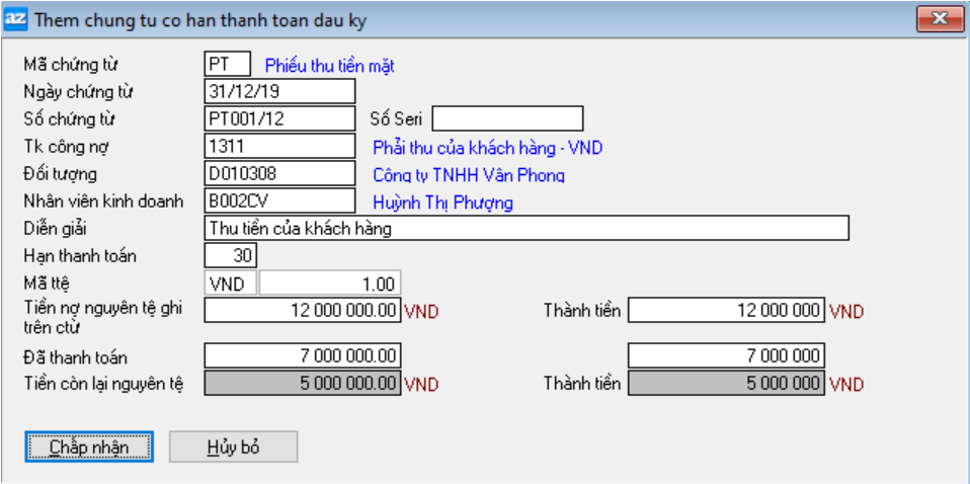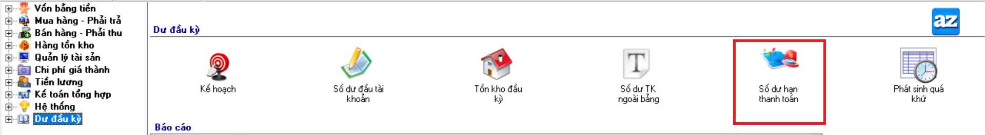 1. Vào phân hệ Dư đầu kỳ\Số dư hạn thanh toán