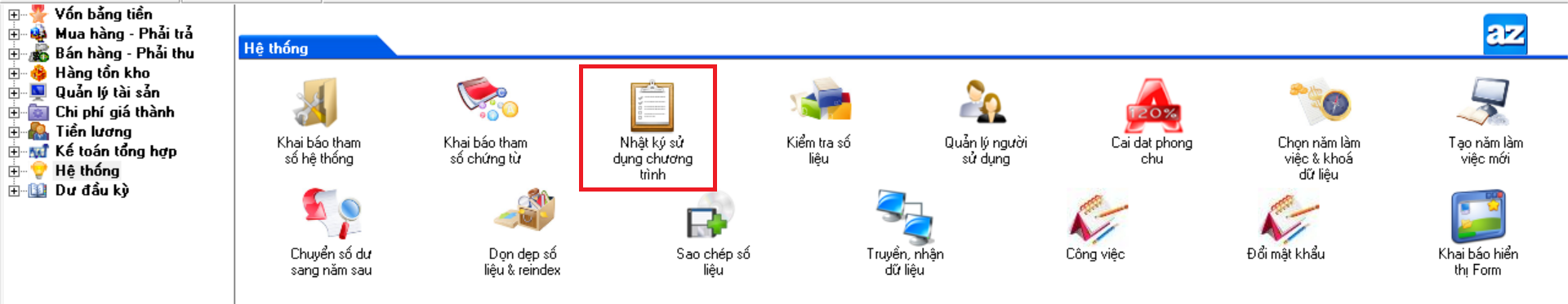 - Từ hệ thống menu nhấp chọn “He thong\Nhật ký sử dụng chương trình”