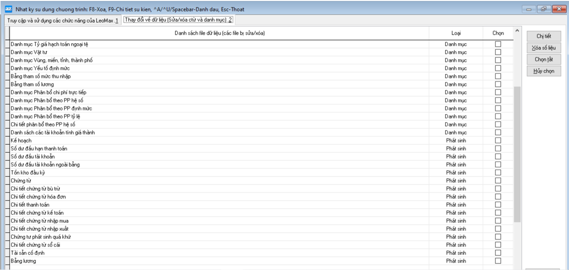 - Tab thứ 2 liệt kê danh sách các bảng dữ liệu mà người dùng đã tác động. Trên các Tab này cho phép người sử dụng có thể xóa hoặc xem chi tiết các thao tác bằng cách nhấp chọn các nút chức năng tương ứng bên phía phải của màn hình.