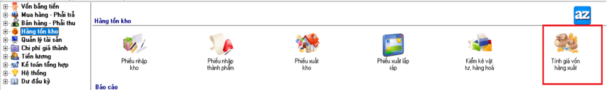 Dùng để tính giá vốn cho các mặt hàng xuất kho, nó chỉ có hiệu lực với những dòng chi tiết chứng từ có đánh dấu “Tự động tính giá vốn”. Ðể thực hiện, từ hệ thống menu nhấp chọn “Tong hop\Tính giá vốn hàng xuất” hoặc vào phân hệ Hàng tồn kho chọn Tính giá vốn hàng xuất.