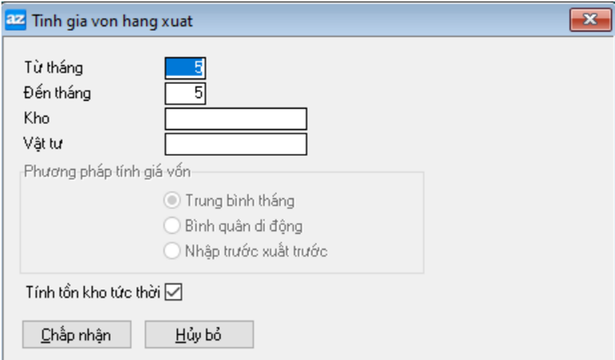 - Từ tháng: Tháng bắt đầu tính giá, chương trình coi như trước tháng này đã được tính giá vốn.