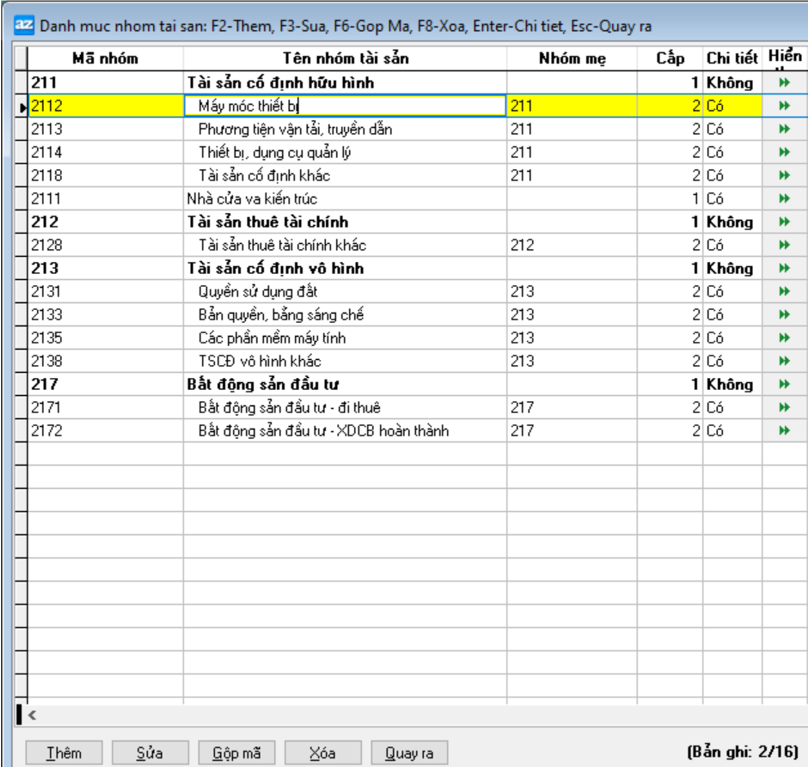 Bước 1: Cập nhật danh mục tài sản và nhóm tài sản: Xem lại phần “Danh mục nhóm tài sản”, “Danh mục tài sản” để có thêm thông tin chi tiết về hai danh mục này.